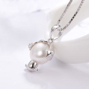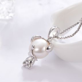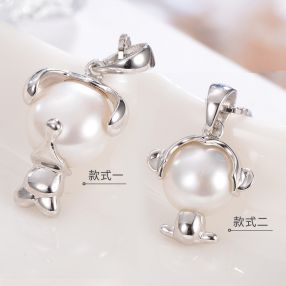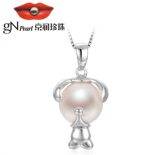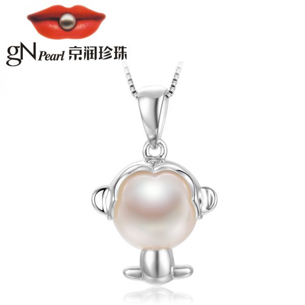 京润 音乐猴 S925银镶淡水珍珠吊坠 8-9mm 白色 馒头形